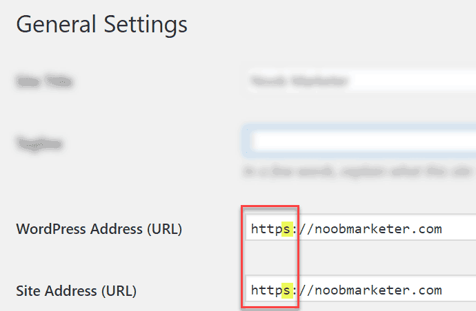 จากนั้นให้เปลี่ยนค่า Website Address และ Site Address ให้เป็น https (ตามรูปด้านล่าง) แล้วกด Save Changes