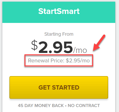 ตัวอย่างข้างล่างคือการคิดราคาของบริษัท GoDaddy (ราคาตอนสมัคร $2.49 ต่อเดือน แต่ถ้าจะต่อสัญญาจะกลายเป็น $7.99 ต่อเดือน)