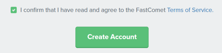 พอกรอกข้อมูลเสร็จแล้ว ให้ติ๊ก “I confirm that I have read and agree to the FastComet Terms of Service” แล้วกดปุ่ม Create Account ได้เลย