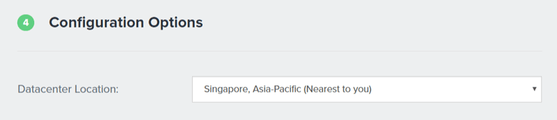 ส่วนต่อมาคือ Configuration Options (ให้เลือกว่าจะให้เว็บโฮสของคุณตั้งอยู่ที่ประเทศไหน) ถ้าคุณทำเว็บภาษาไทย ให้เลือกประเทศ Singapore เพราะอยู่ใกล้ประเทศไทยที่สุด เว็บจะโหลดไวขึ้น