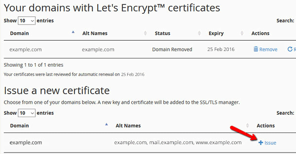 เมื่อกดเข้าไปคุณจะเห็นหน้าต่างด้านล่าง (Issue a new certificate) ให้คลิกลิงก์ Issue เพื่อออก SSL certificate ให้เว็บไซต์คุณ